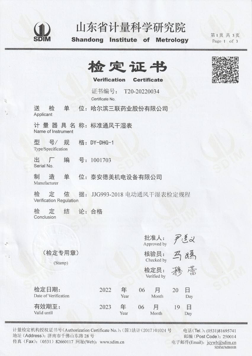 哈爾濱三聯(lián)藥業(yè)股份有限公司-標準通風干濕表 2022-7-5 本文被閱讀 14792 次
