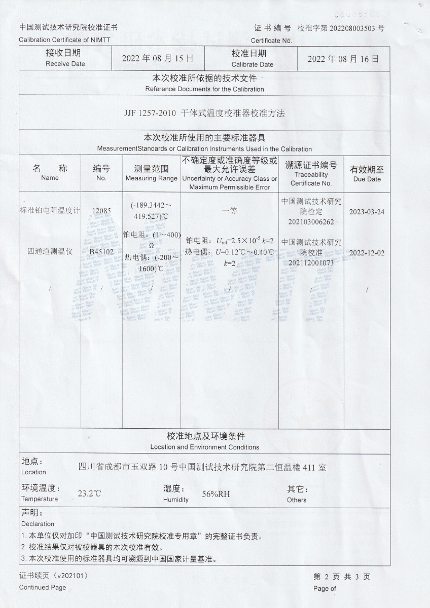 | 上一條:東營市安全工器具質(zhì)量檢測有限公司-黑體輻射源DY-HT1-Y | 下一條:廉金屬熱電偶檢定爐-校準(zhǔn)證書 |