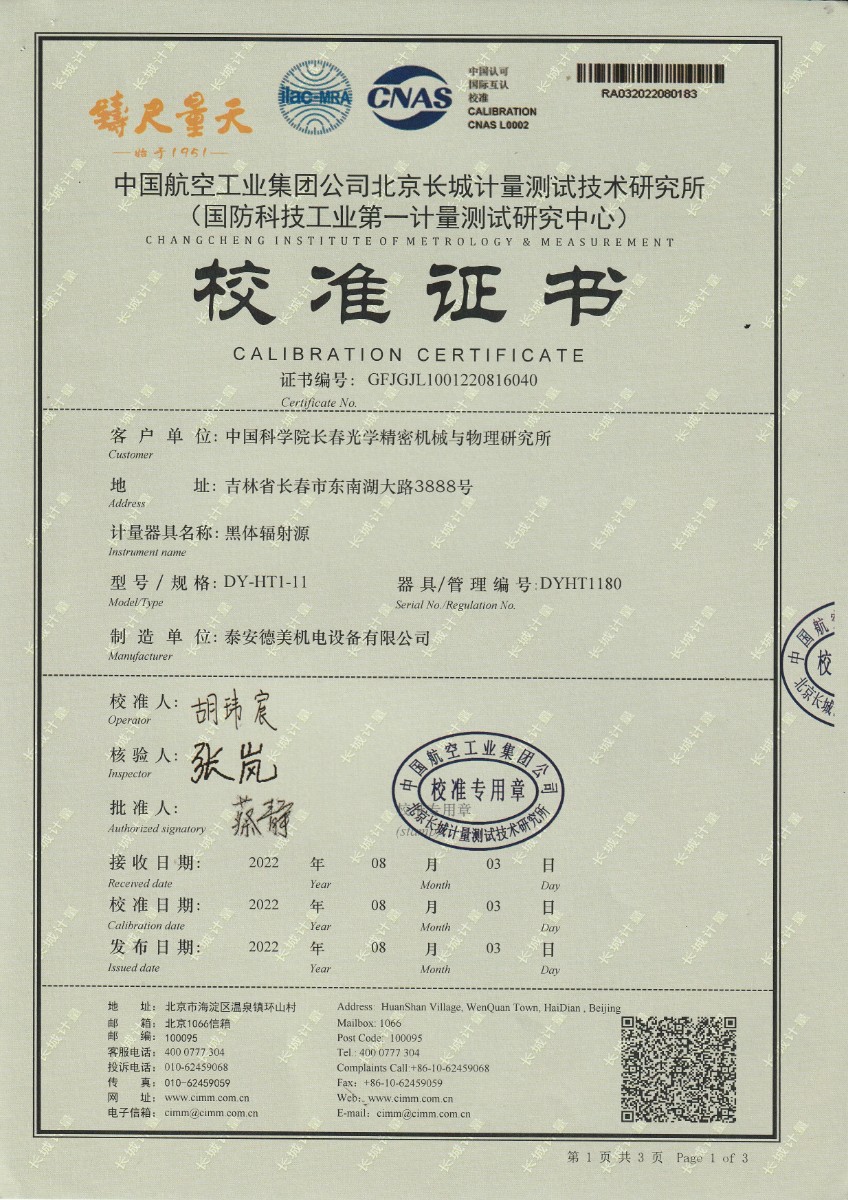 | 上一條:中國(guó)科學(xué)院長(zhǎng)春光學(xué)精密機(jī)械與物理研究所-黑體爐DY-HT1-2 | 下一條:廉金屬熱電偶檢定爐-校準(zhǔn)證書(shū) |