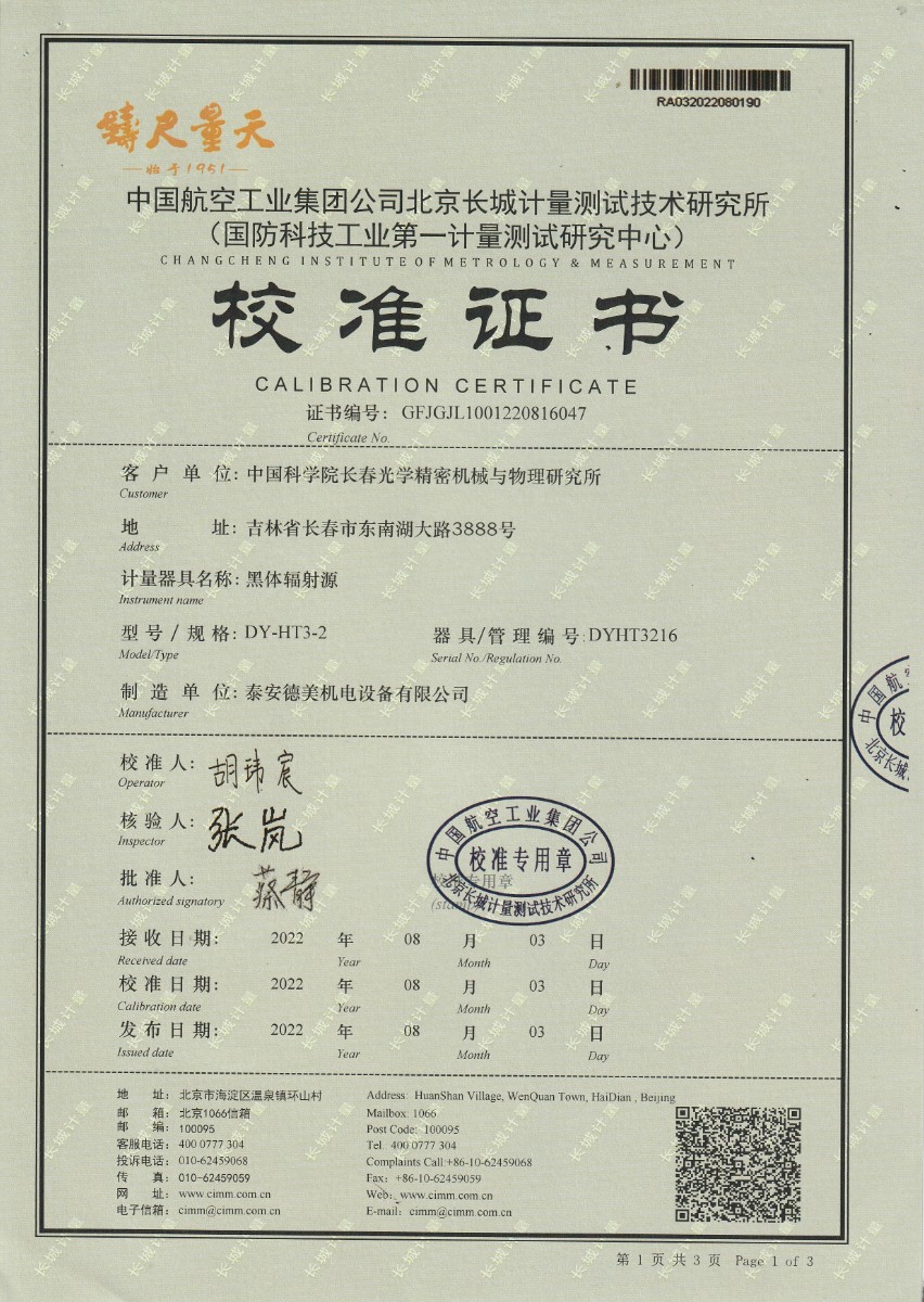 | 上一條:中國(guó)科學(xué)院長(zhǎng)春光學(xué)精密機(jī)械與物理研究所-黑體爐DY-HT3-1 | 下一條:廉金屬熱電偶檢定爐-校準(zhǔn)證書 |
