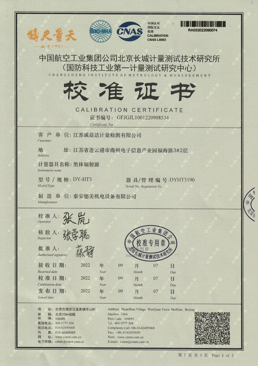 江蘇誠益達計量檢測有限公司-黑體輻射源 2022-10-15 本文被閱讀 16169 次