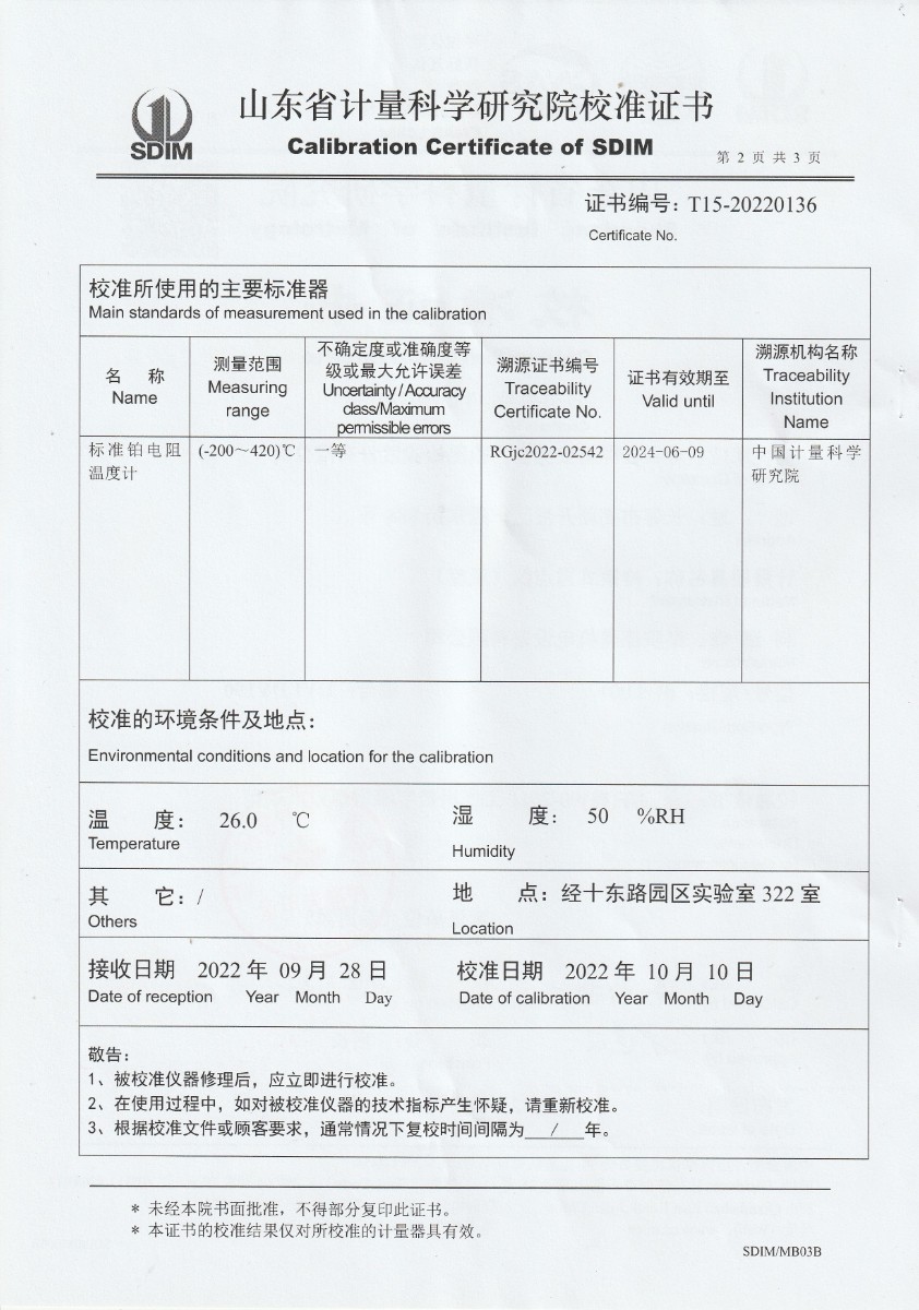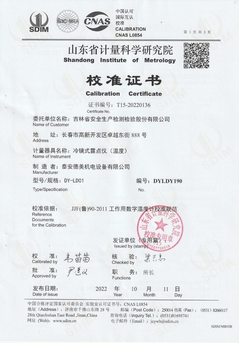 吉林省安全生產檢測檢驗股份有限公司-冷鏡式露點儀校準證書 2022-10-20 本文被閱讀 13787 次