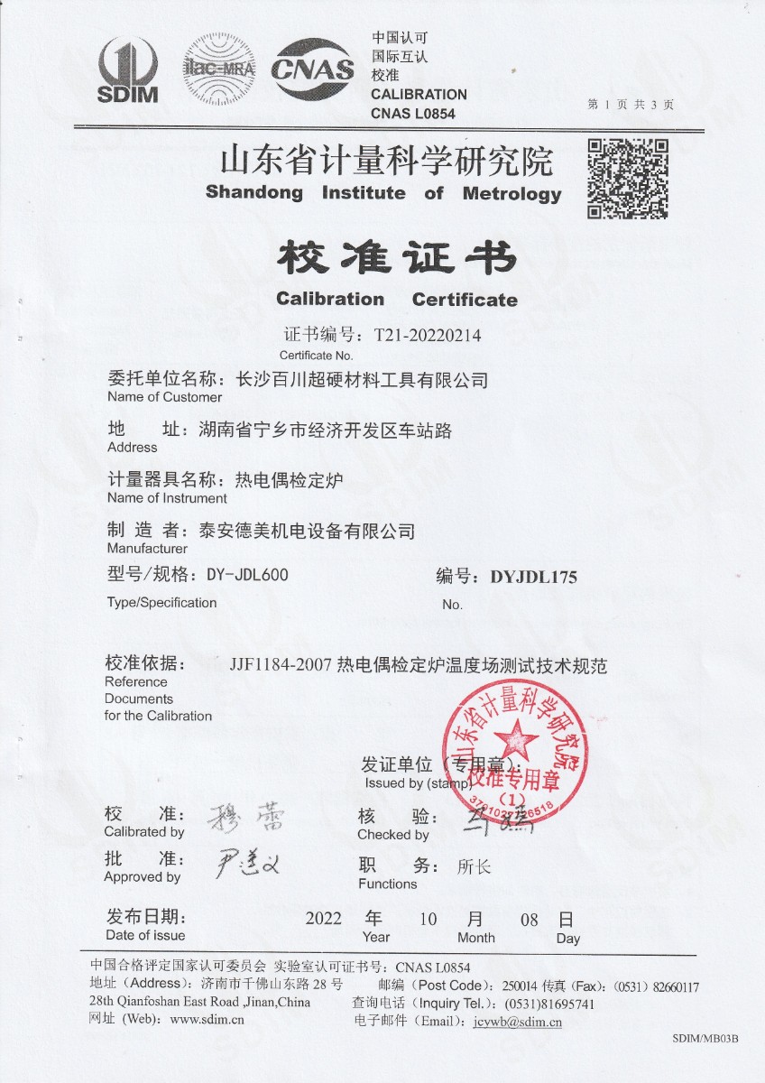長沙百川超硬材料工具有限公司-熱電偶檢定爐 2022-11-9 本文被閱讀 13975 次