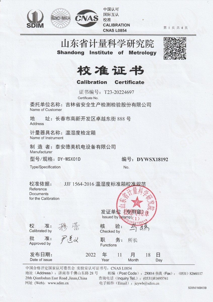 | 上一條:海安橡膠集團(tuán)股份有限公司 干體爐 校準(zhǔn)證書(shū) | 下一條:廉金屬熱電偶檢定爐-校準(zhǔn)證書(shū) |