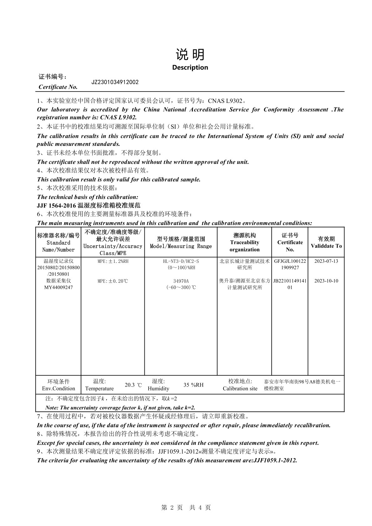 | 上一條:海峽富民生質(zhì)檢技術(shù)服務(wù)有限公司 溫濕度檢定箱校準(zhǔn)證書(1) | 下一條:溫度數(shù)據(jù)采集儀校準(zhǔn)證書 |