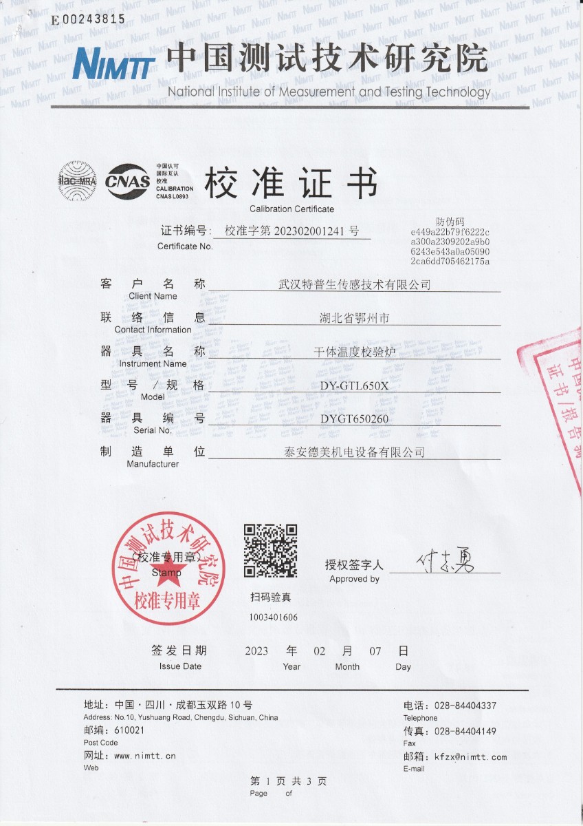 | 上一條:泰安德美機(jī)電設(shè)備有限公司 TRT4.82 精密輻射溫度計(jì) 校準(zhǔn)證書 | 下一條:高精度制冷恒溫槽(-80~100℃)校準(zhǔn)證書 |