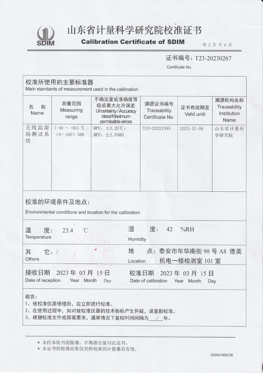 上一條:揚州晨光計量檢測有限公司 溫濕度檢定箱 校準證書下一條:溫度數(shù)據(jù)采集儀校準證書