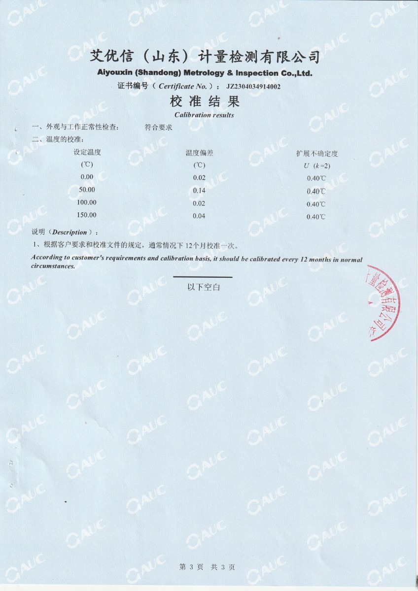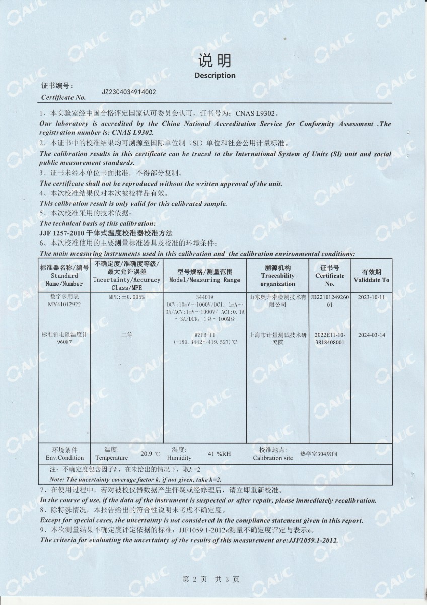 | 上一條:開封光利高科實(shí)業(yè)有限責(zé)任公司送變電公司 變壓器溫度計(jì)校驗(yàn)裝置 校準(zhǔn)證書(1) | 下一條:廉金屬熱電偶檢定爐-校準(zhǔn)證書 |