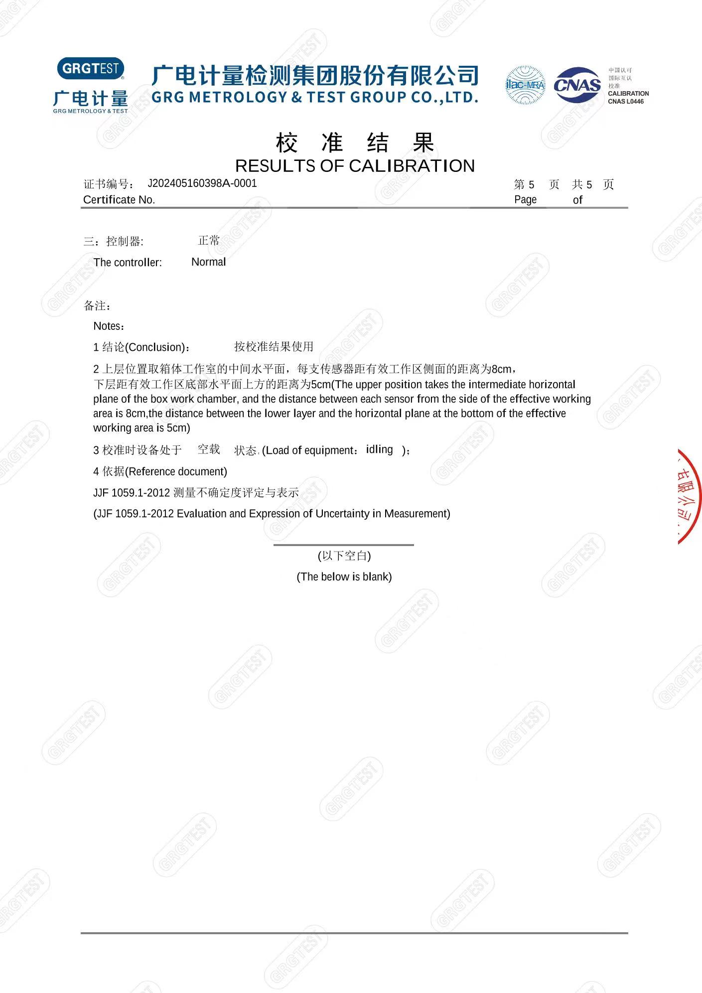 | 上一條:零點恒溫器(0℃±0.1℃)校準(zhǔn)證書 | 下一條:溫度數(shù)據(jù)采集儀校準(zhǔn)證書 |