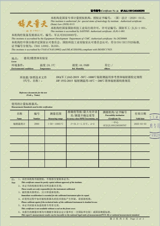 | 上一條:黑體輻射源(50-700℃)304所校準(zhǔn)證書 | 下一條:高精度制冷恒溫槽(-80~100℃)校準(zhǔn)證書 |