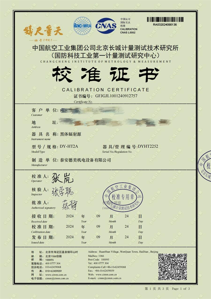 黑體輻射源(50-700℃)校準(zhǔn)證書 2024-10-17 本文被閱讀 6700 次