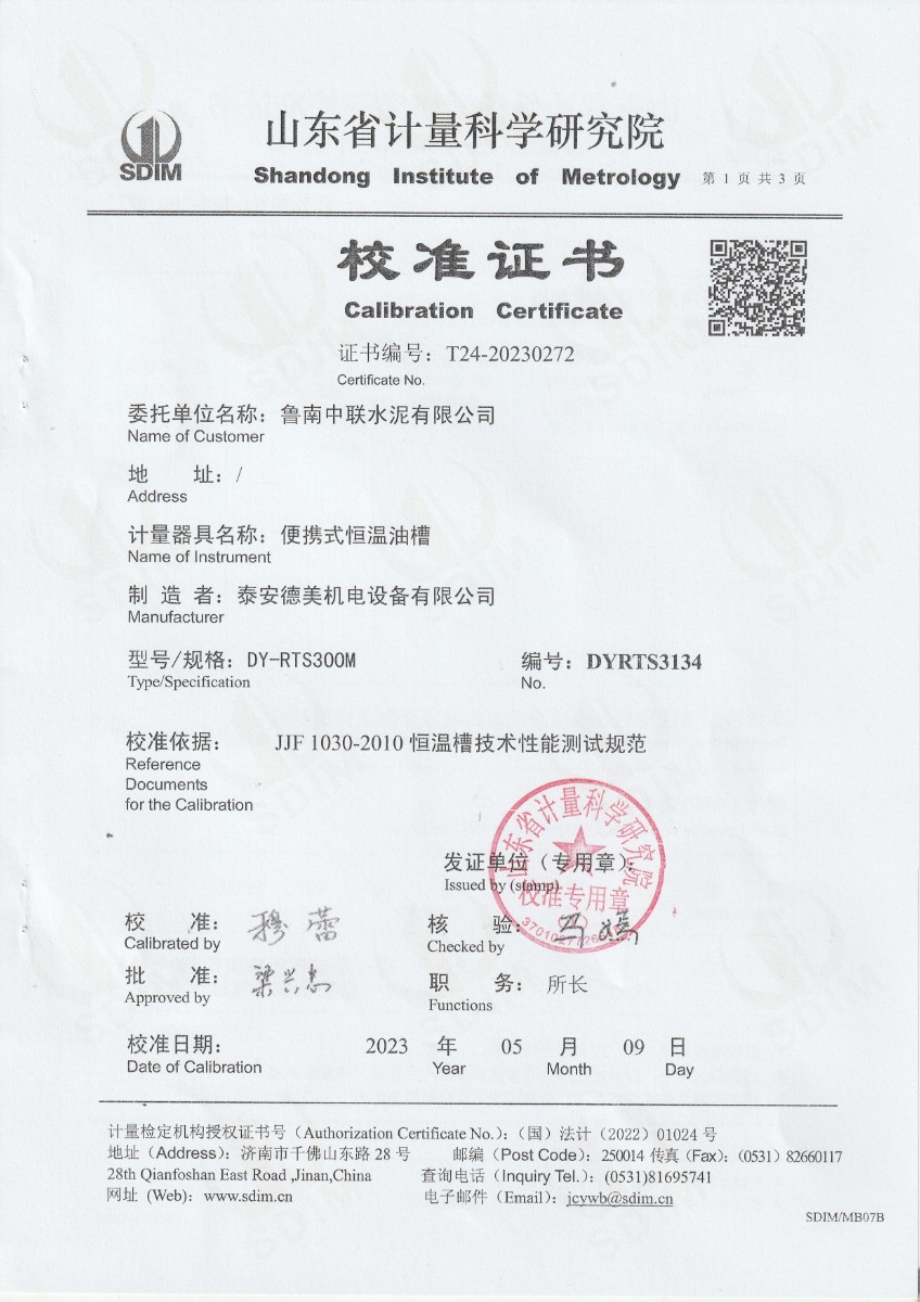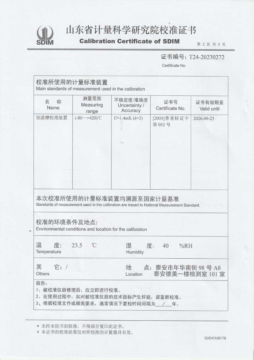 | 上一條:魯南中聯(lián)水泥有限公司 便攜式制冷恒溫槽 校準(zhǔn)證書 | 下一條:廉金屬熱電偶檢定爐-校準(zhǔn)證書 |