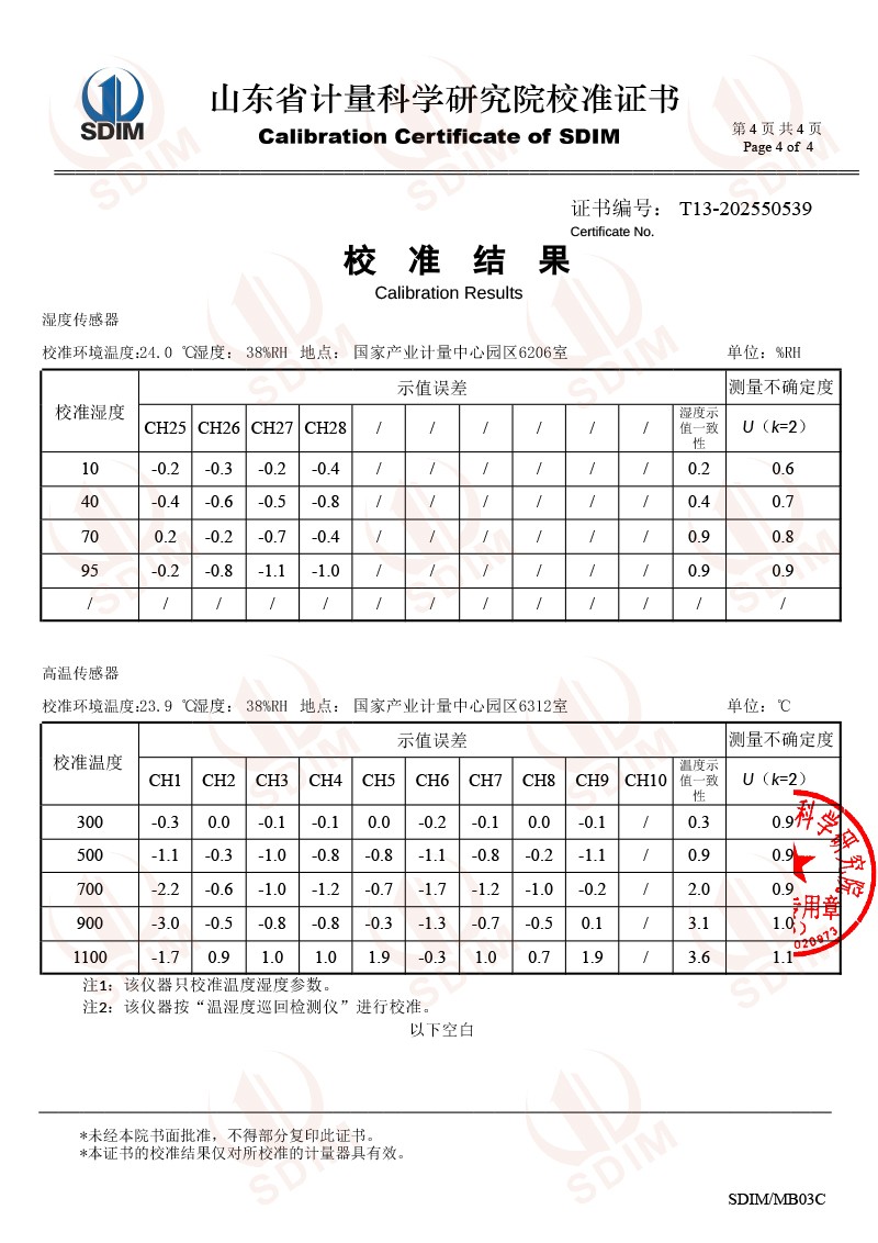 溫濕度巡檢儀測試系統(tǒng)校準證書