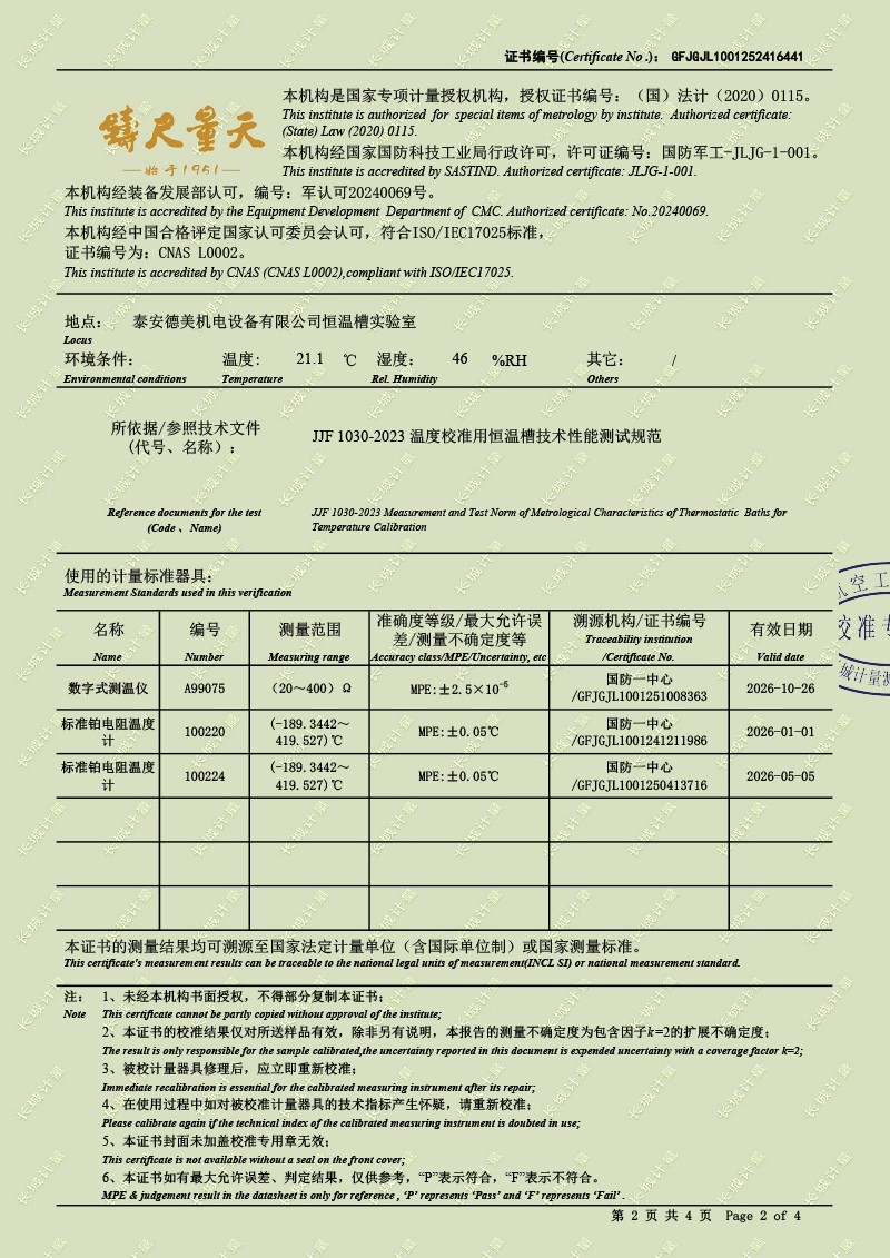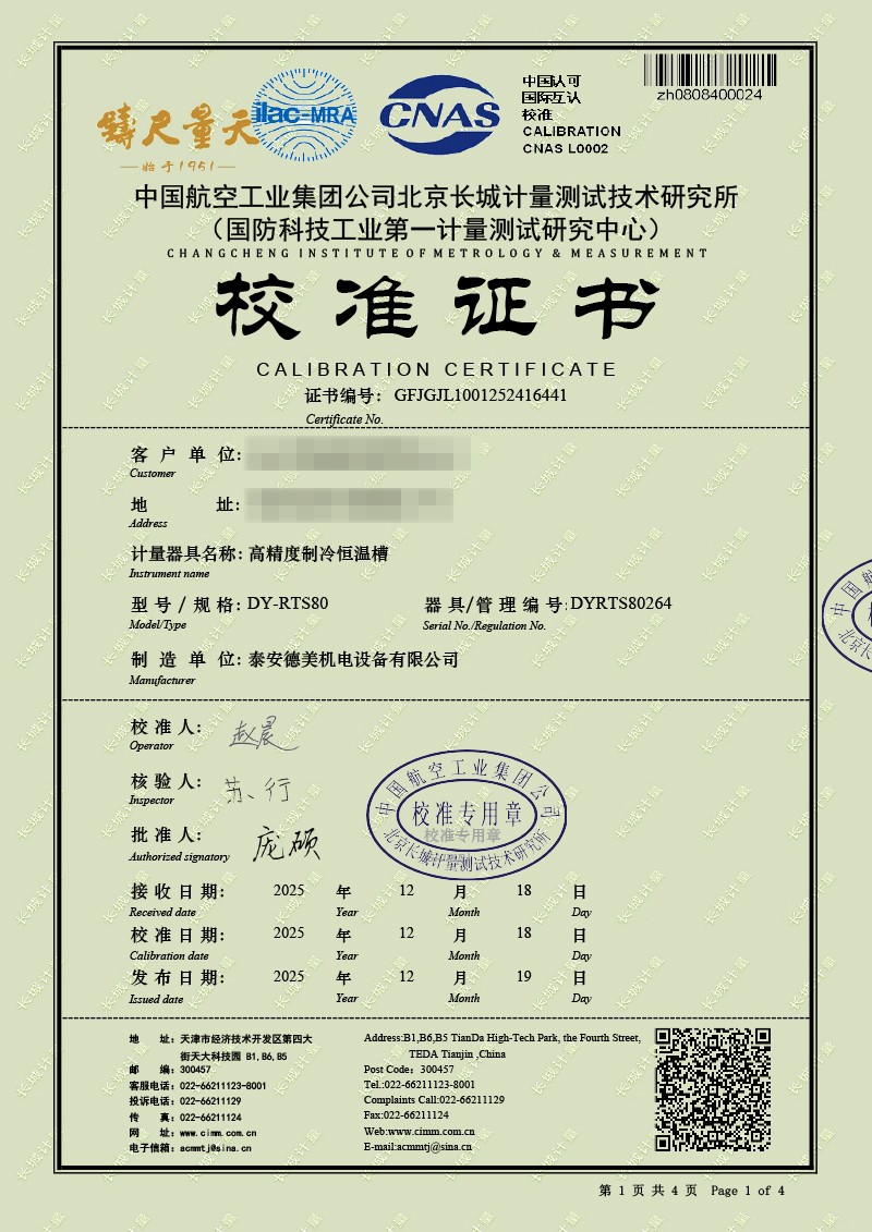 高精度制冷恒溫槽(-80~100℃)校準證書 2025-12-19 本文被閱讀 1311 次