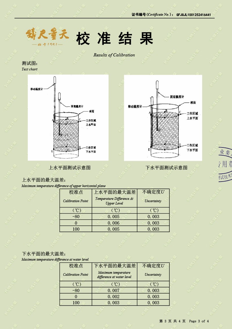 高精度制冷恒溫槽(-80~100℃)校準證書
