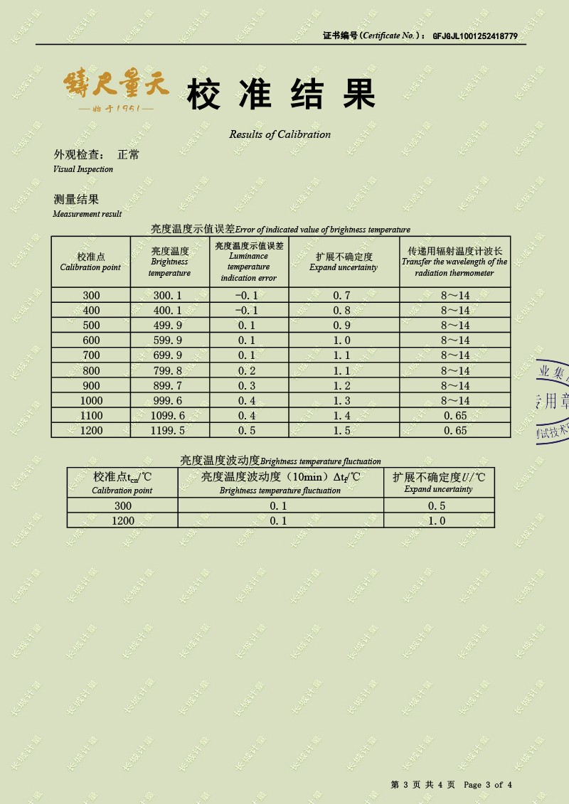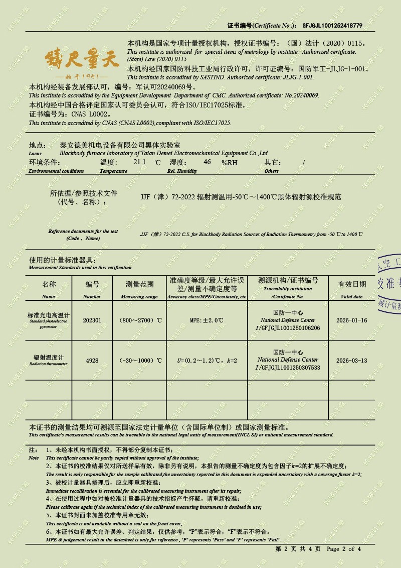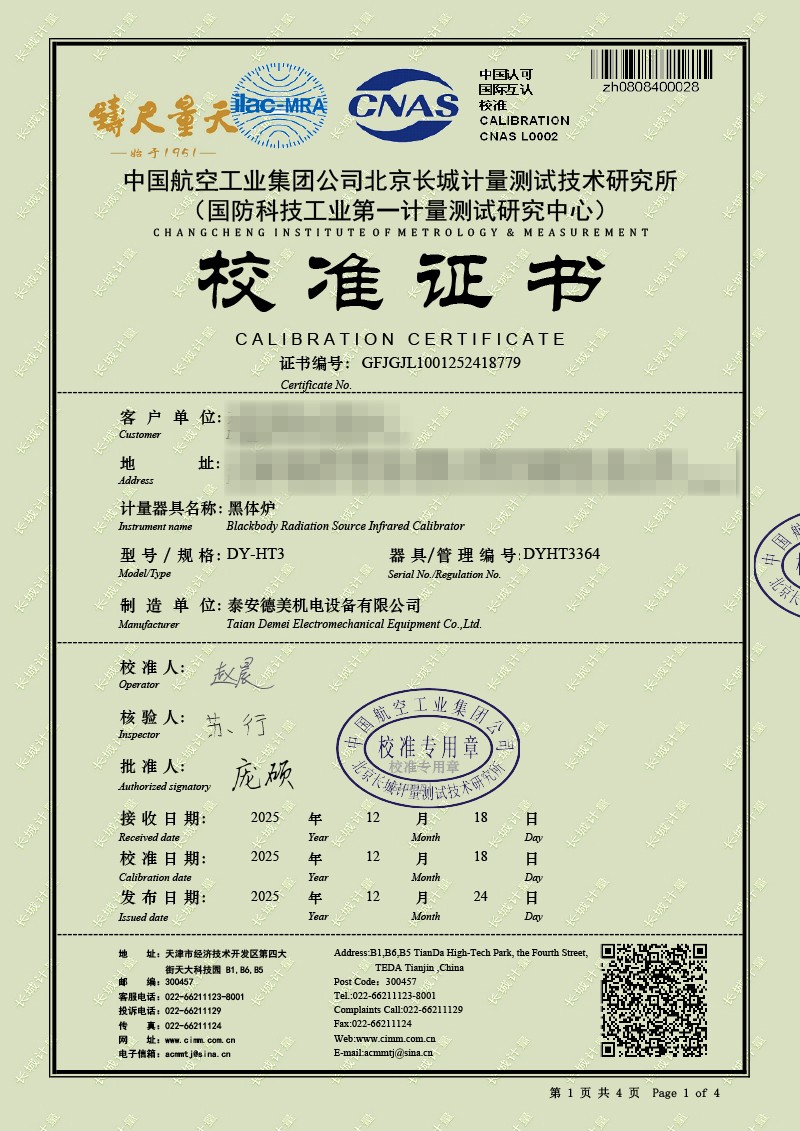 黑體爐DY-HT3校準證書 2026-1-4 本文被閱讀 139 次