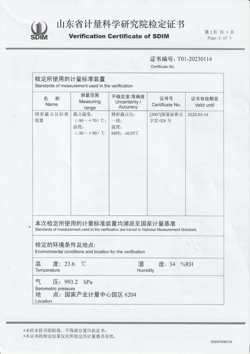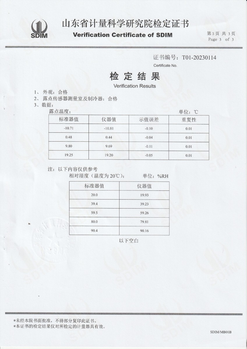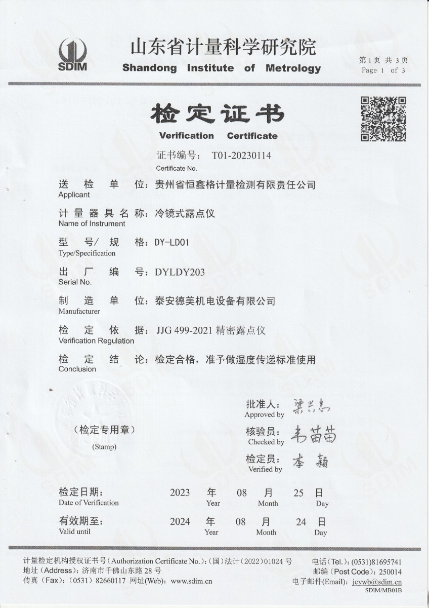 貴州省恒鑫格計量檢測有限責任公司-冷鏡式露點儀檢定證書 2023-9-4 本文被閱讀 9811 次