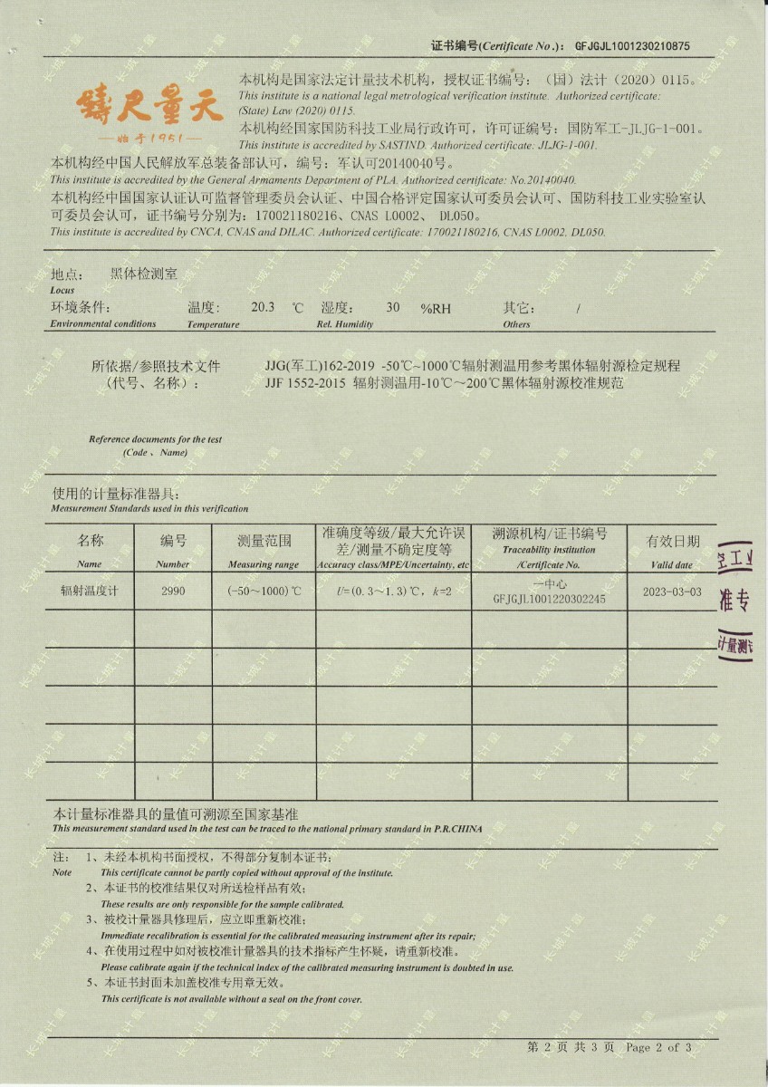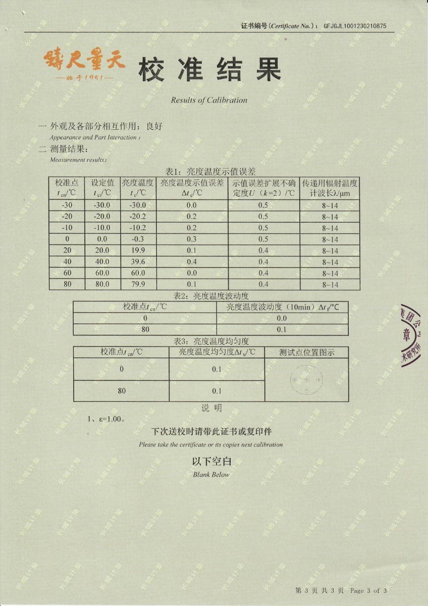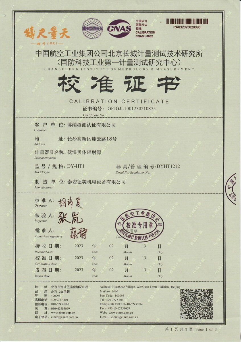 博納檢測認證有限公司 低溫黑體輻射源 校準證書 2023-2-25 本文被閱讀 11980 次